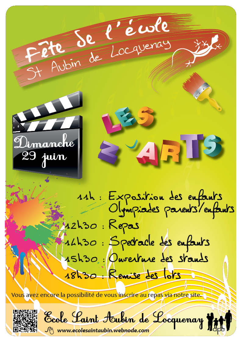 16/06/2014 17:09La fête de l’école publique de Saint Aubin de Locquenay aura lieu le dimanche 29 juin 2014 à partir de 11h